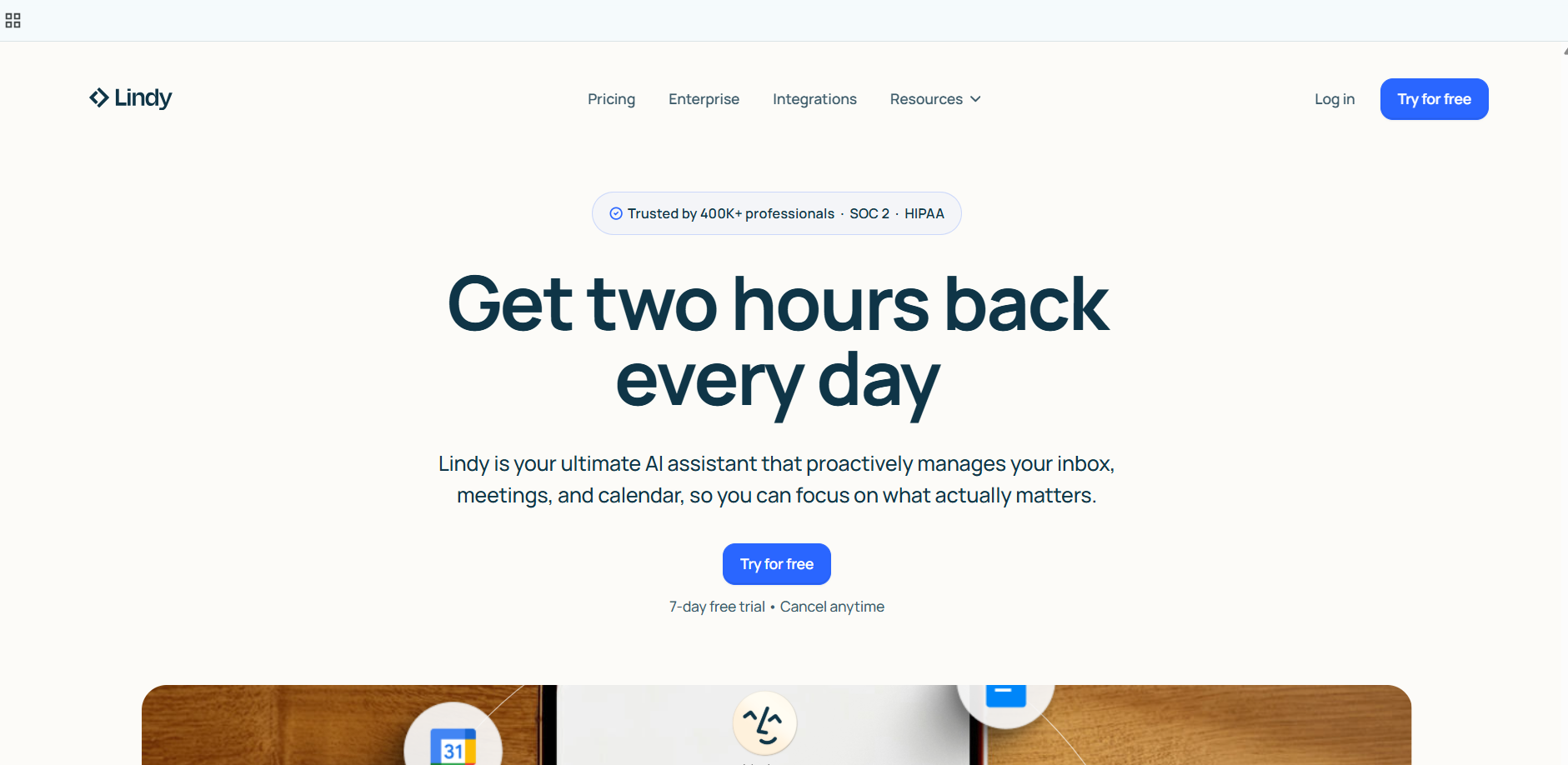 Lindy saves you two hours a day by proactively managing your inbox, meetings, and calendar, so you can focus on what actually matters.