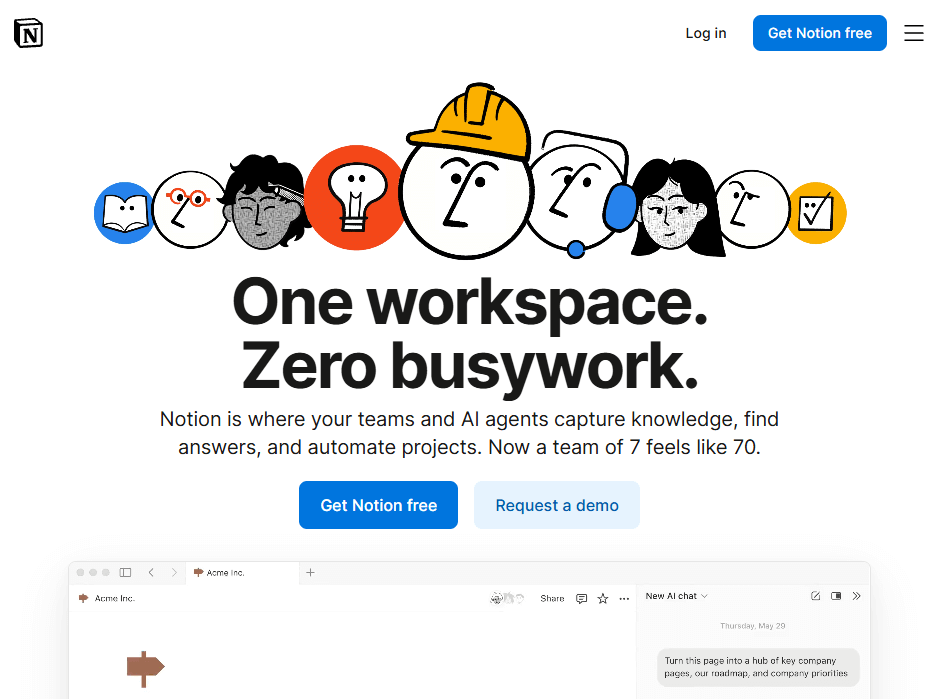 Notion lets you build a custom meeting hub that contains your pages and databases. You can document agendas, capture notes in real time, and link them to tasks or projects. The AI can summarize meeting minutes and draft follow-ups based on your notes.